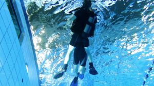 WeiterlesenDie Ausbildung zum Grundtauchschein ist in vollem Gange. Zur Ausbildung gehören auch diverse praktische Übungen. Am Anfang steht der Sprung ins Wasser. Durch den Sprung vom Startblock wird ein Sprung von einem Schiff simuliert. Neben...